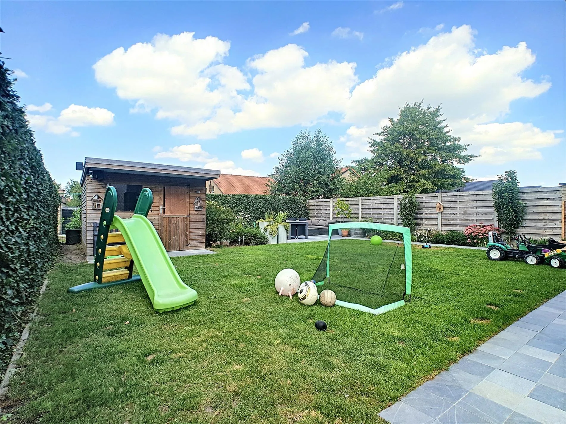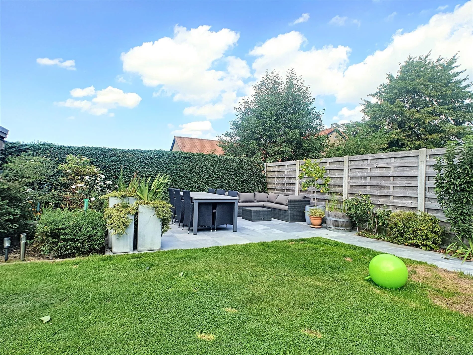 - Ruime, lichtrijke leefruimte met toegang tot de zongerichte tuin / terras met zij-uitgang,