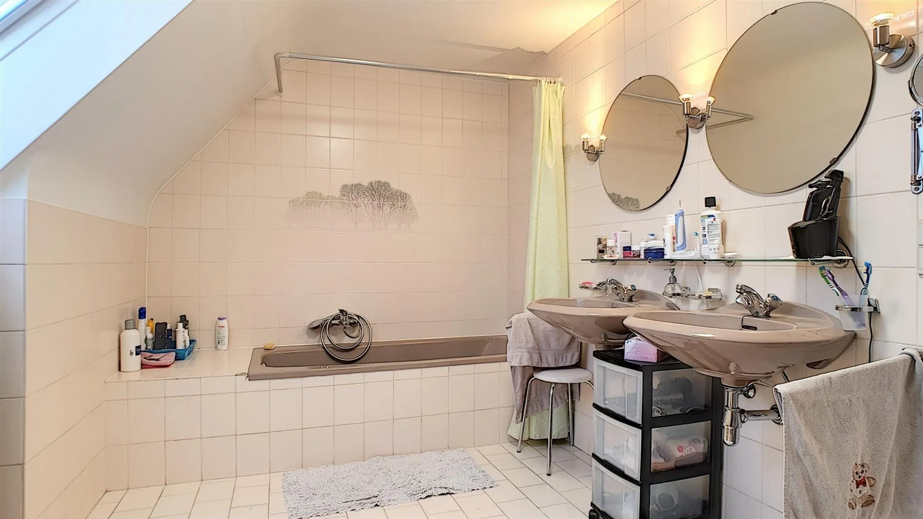 - Badkamer voorzien van ligbad, toilet en dubbele lavabo;