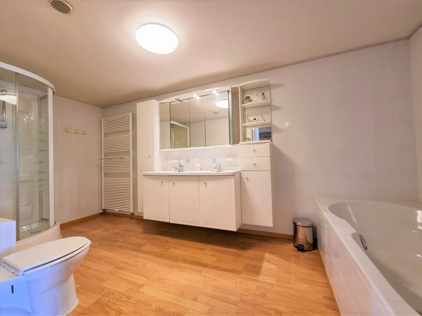 - Badkamer voorzien van ligbad, dubbele wastafel, douche & toilet.