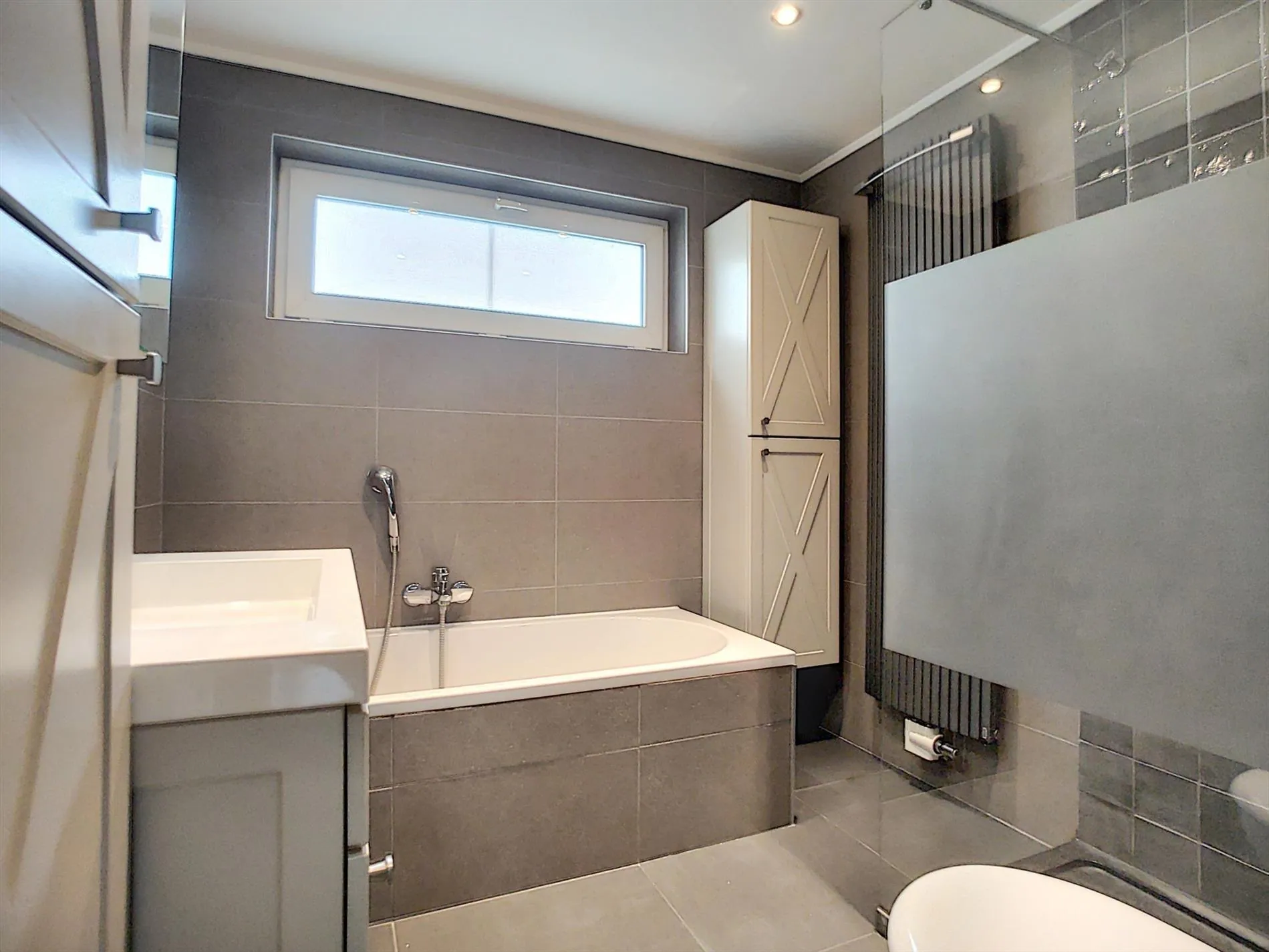 - Nieuwe badkamer voorzien van inloopdouche, ligbad, toilet & lavabo