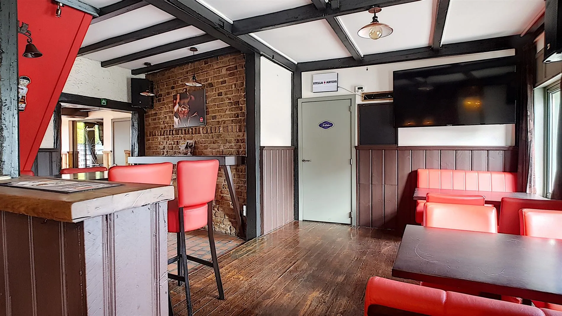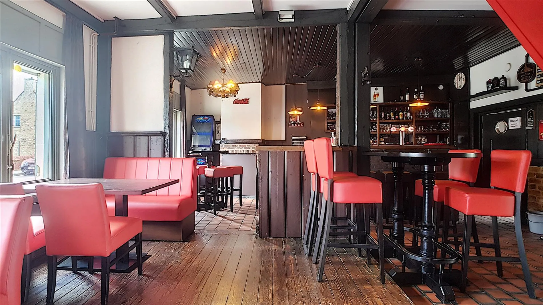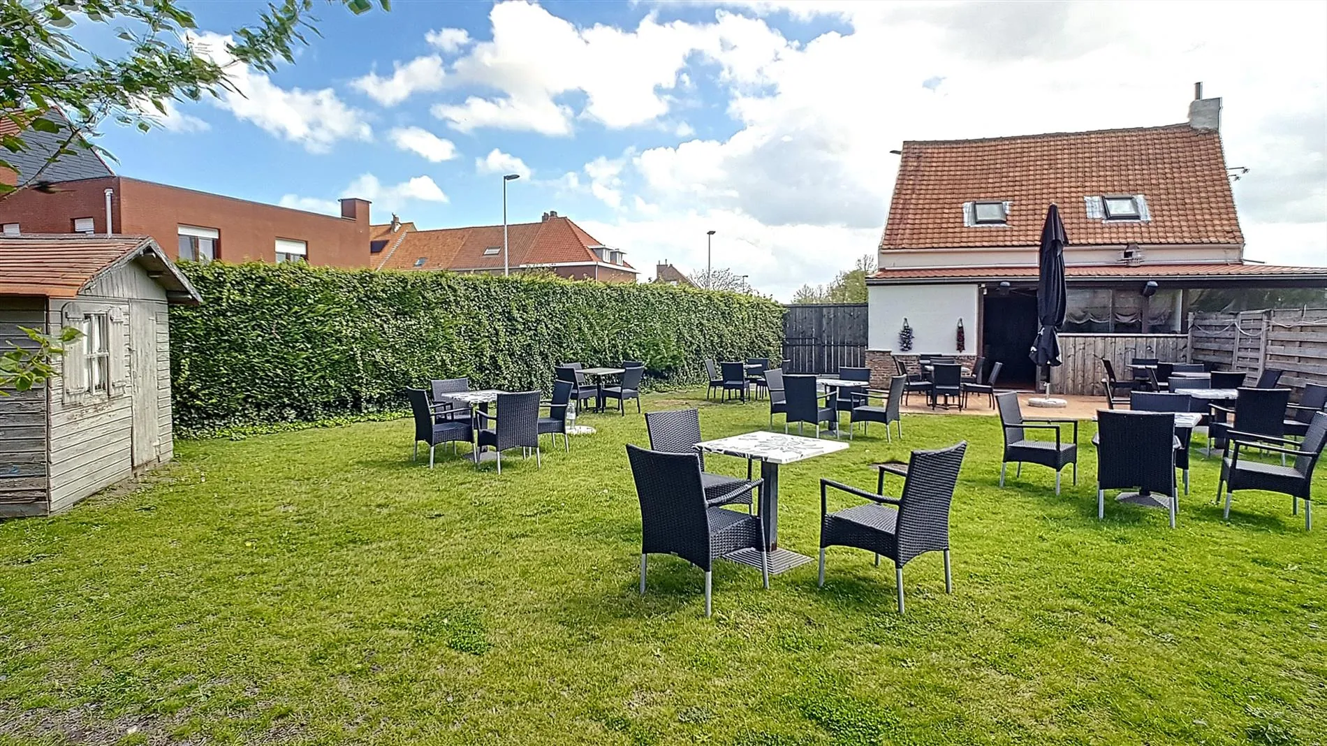 - Het pand bevindt zich vlakbij een school, wat mogelijkheid biedt voor een leuke, commerciële zaak (broodjes, kleine snacks, ...) Bovendien is het eigendom voorzien van een grote terras/tuin, wat een uitzondering is voor een dergelijk pand in deze omgeving. Dit idee, aangevuld met de huidige vorm van uitbaten, kan hier een zeer winstgevende zaak van maken. De zaak is vrij van brouwer etc.