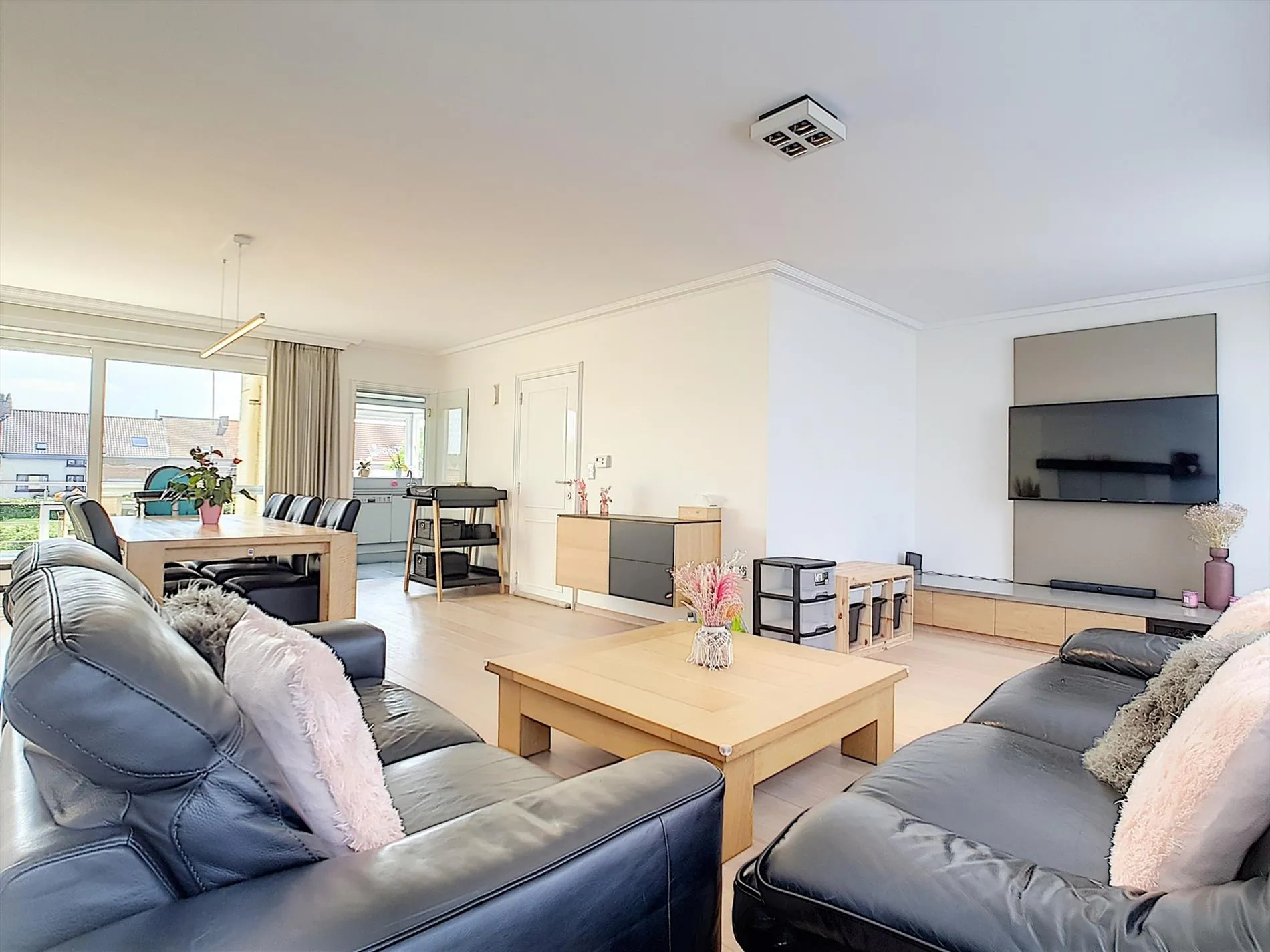 - Zeer lichtrijke leefruimte met zit-en eethoek en genietende van open zichten,
