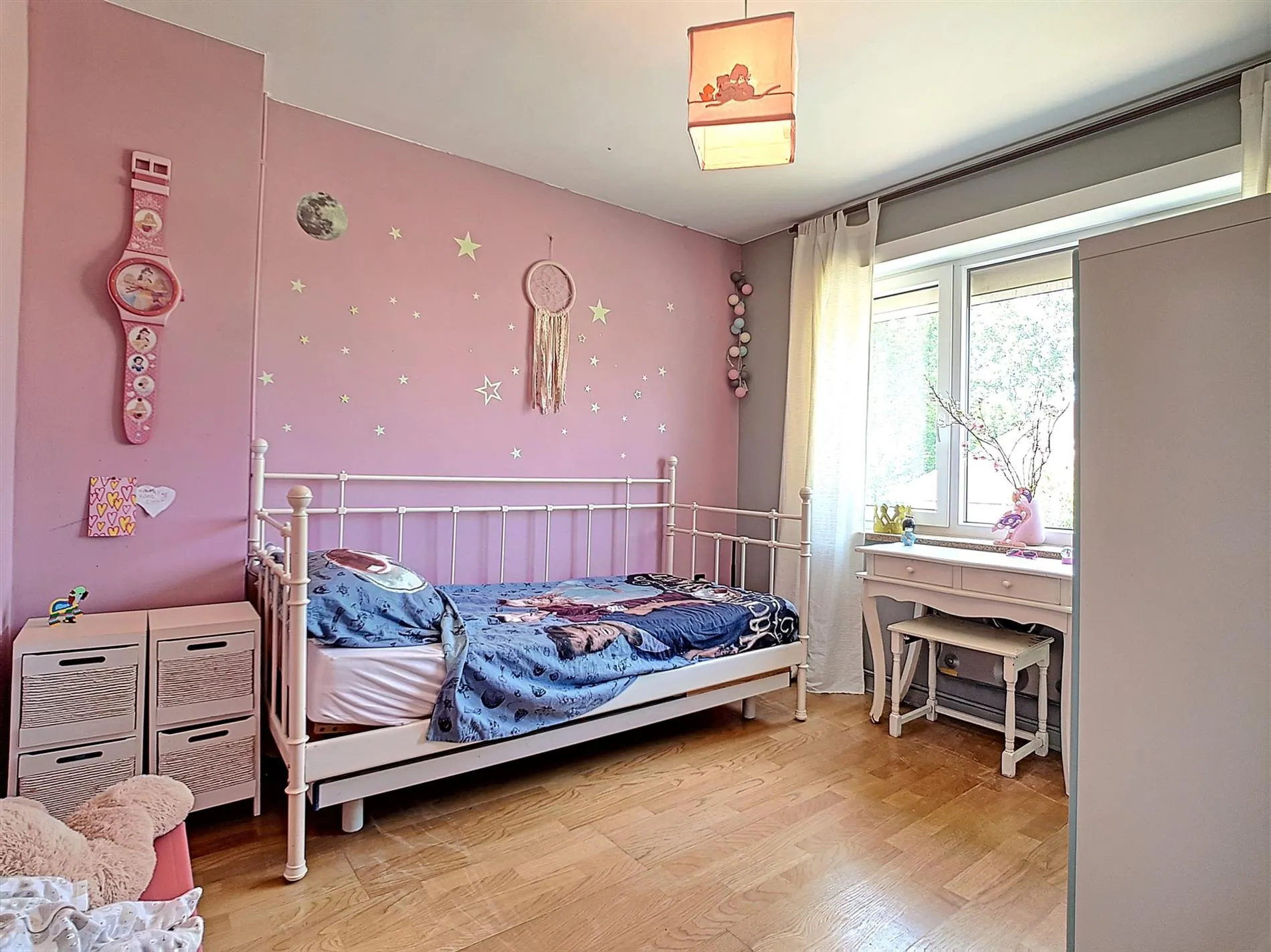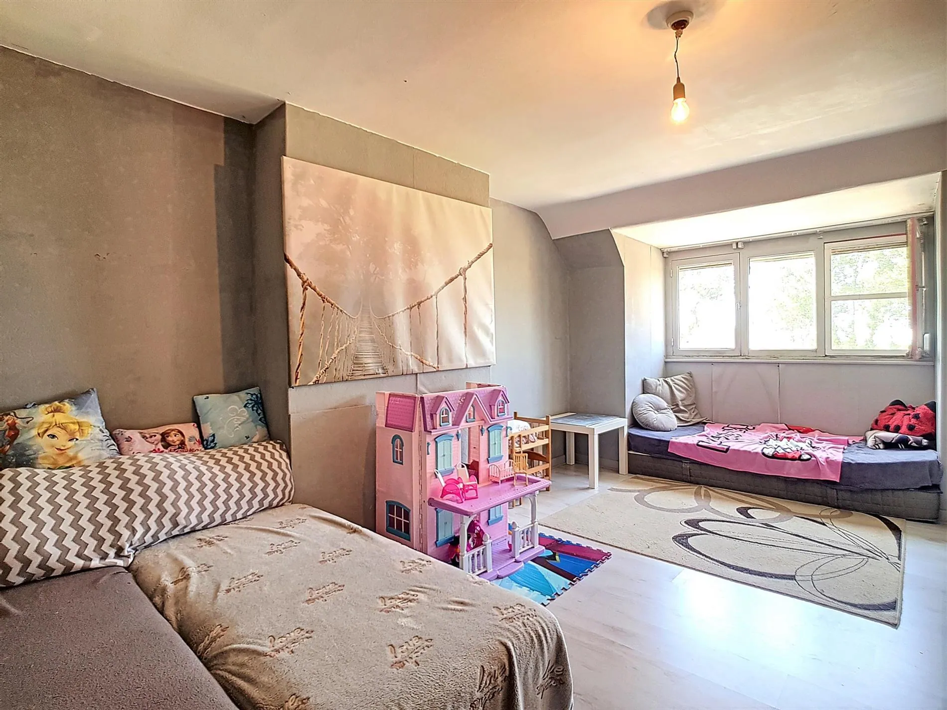 - Drie slaapkamers waarvan twee grote en één kleine kamer,
