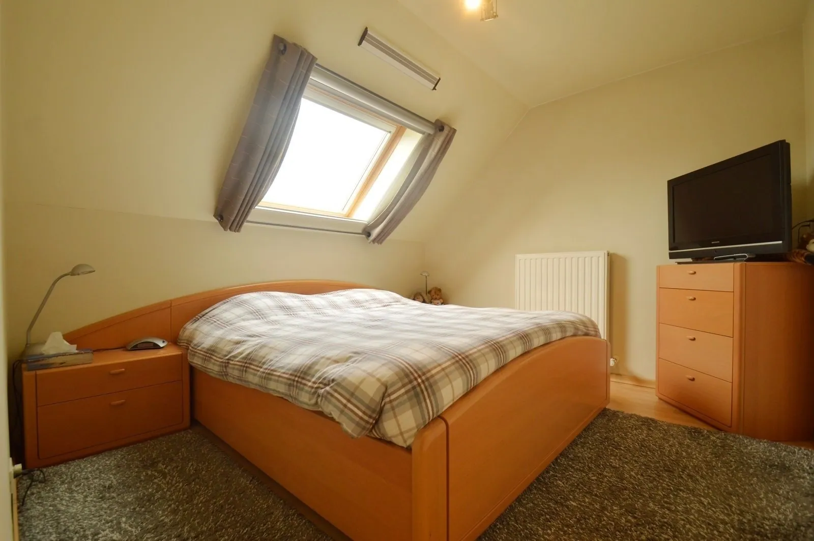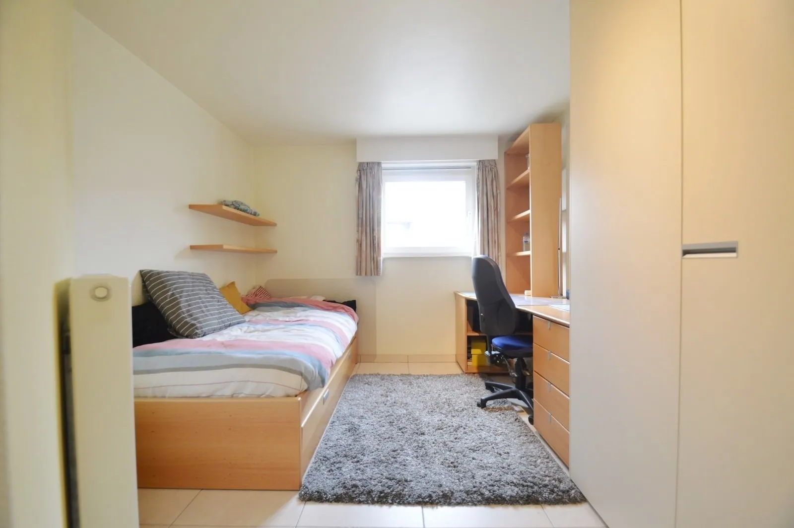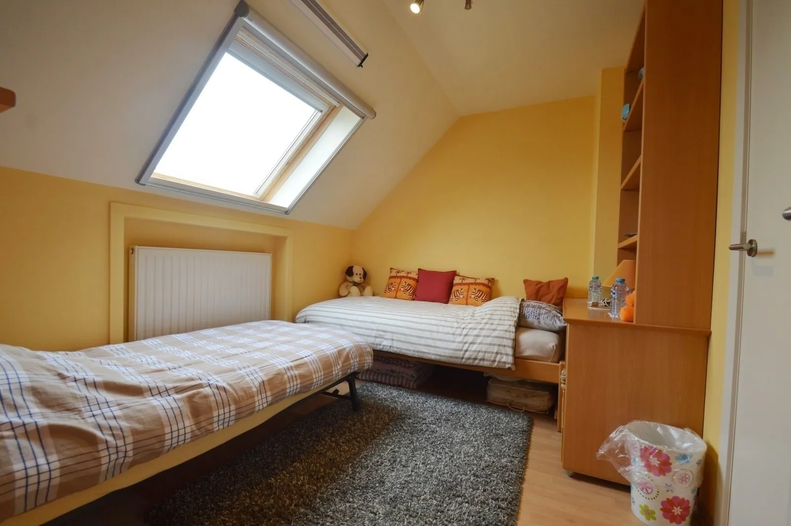 - Eerste slaapkamer met eigen sanitair (douche, wastafel & toilet) en ingemaakte kasten,