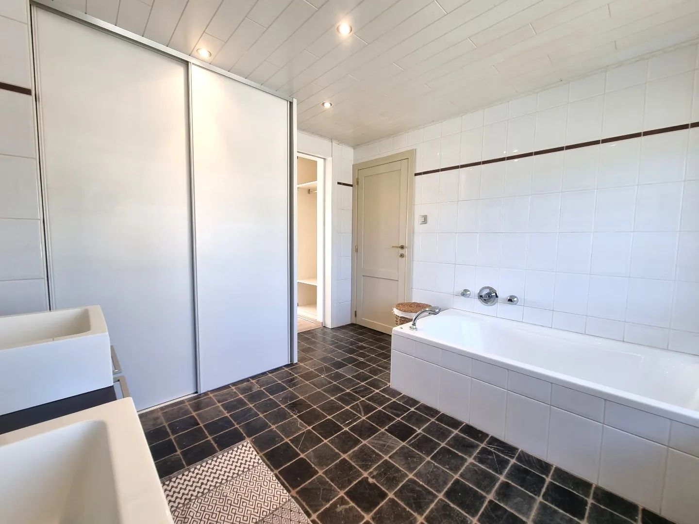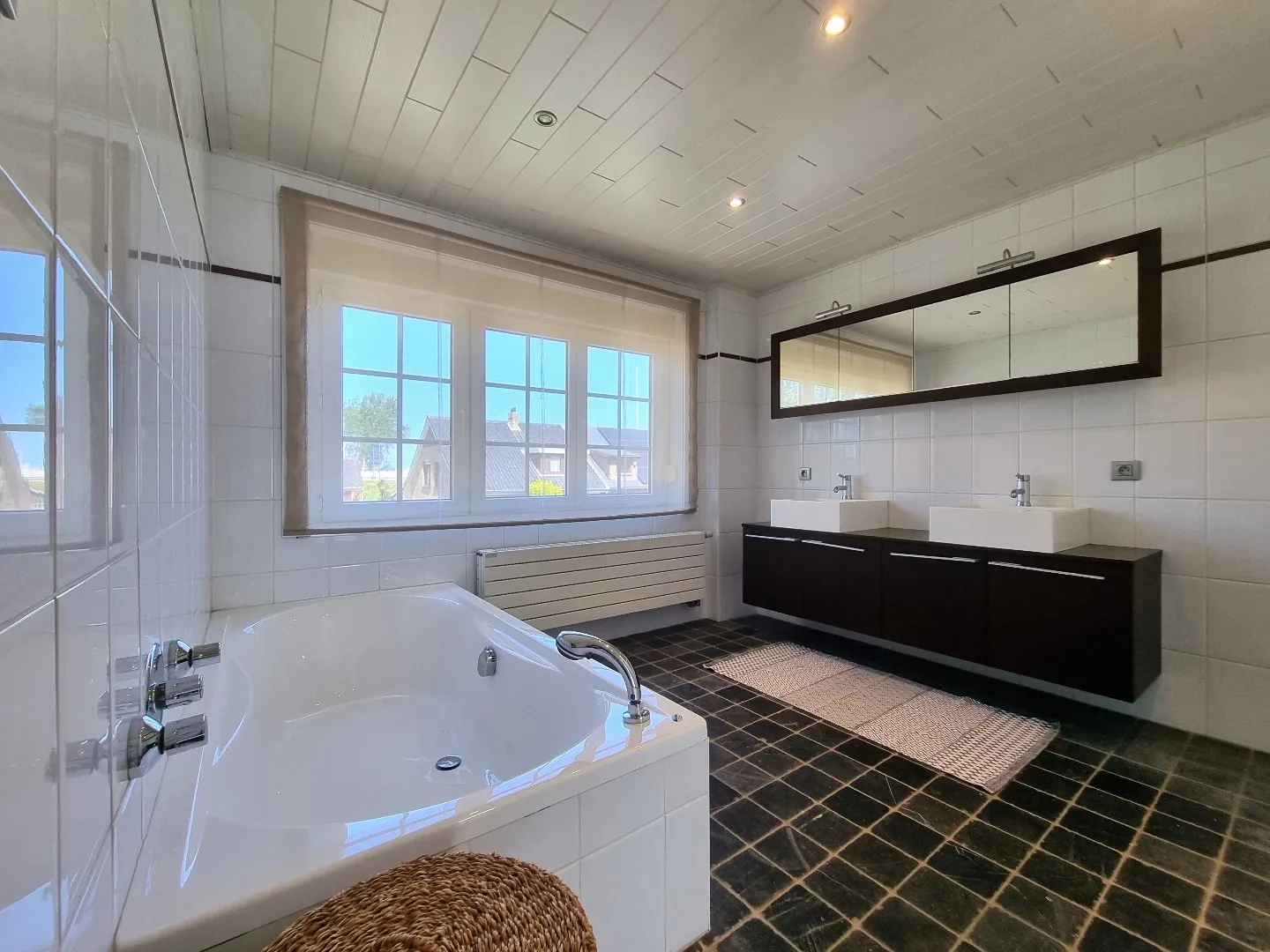 - Ensuite badkamer voorzien van ligbad, dubbele wastafel en ingemaakte kasten,