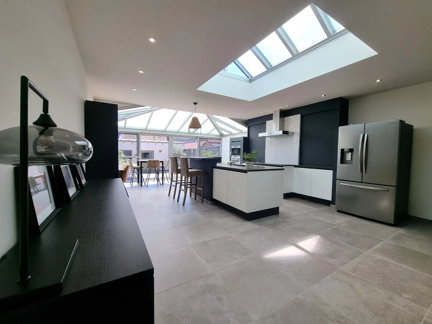- Prachtige, volledig open en enorm lichtrijke leefruimte met zit -en eethoek,