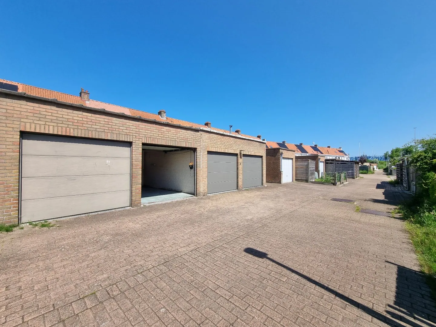 - Dubbele garage met sectionale poorten. Parking voor de garages inbegrepen.