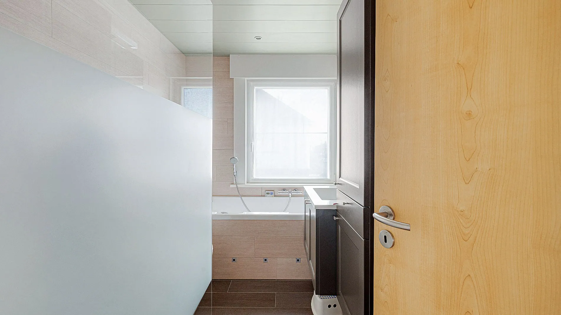 - Badkamer uitgerust met bad, douche, lavabo en toilet,
