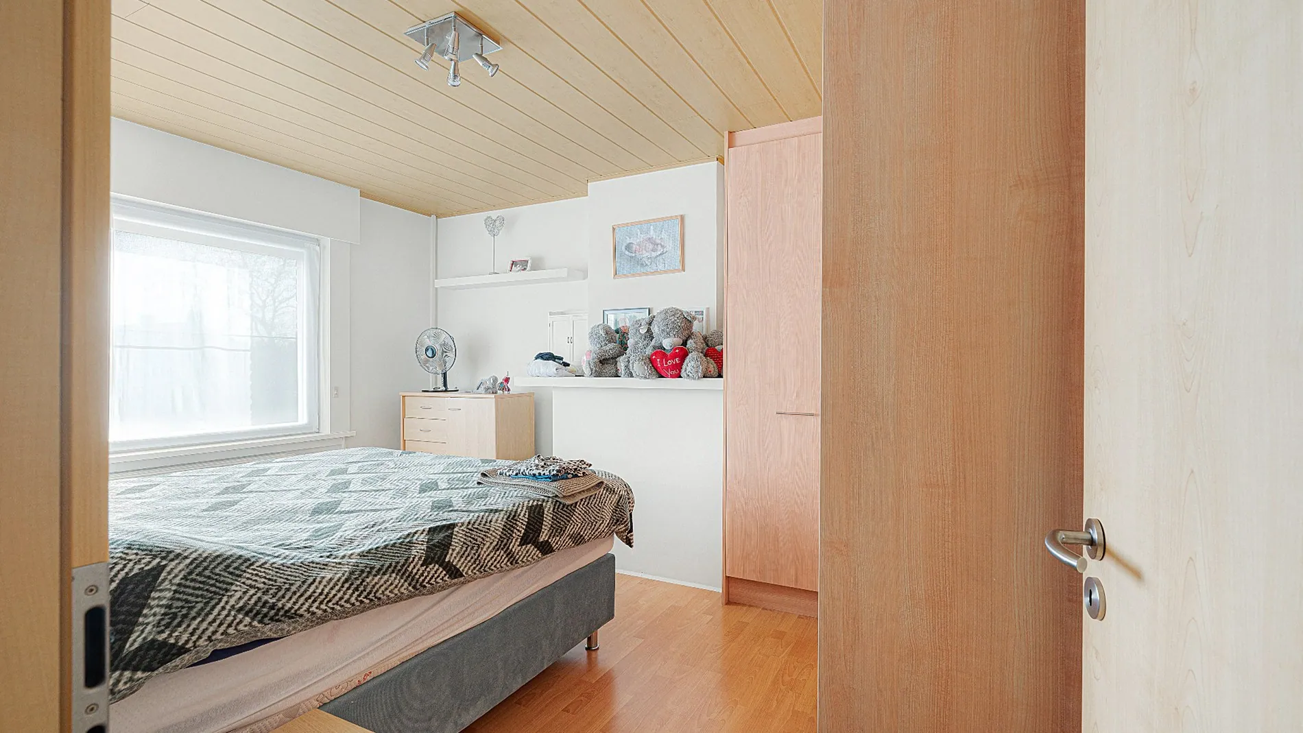 - Tweede ruime slaapkamer, eveneens met ingemaakte kasten,