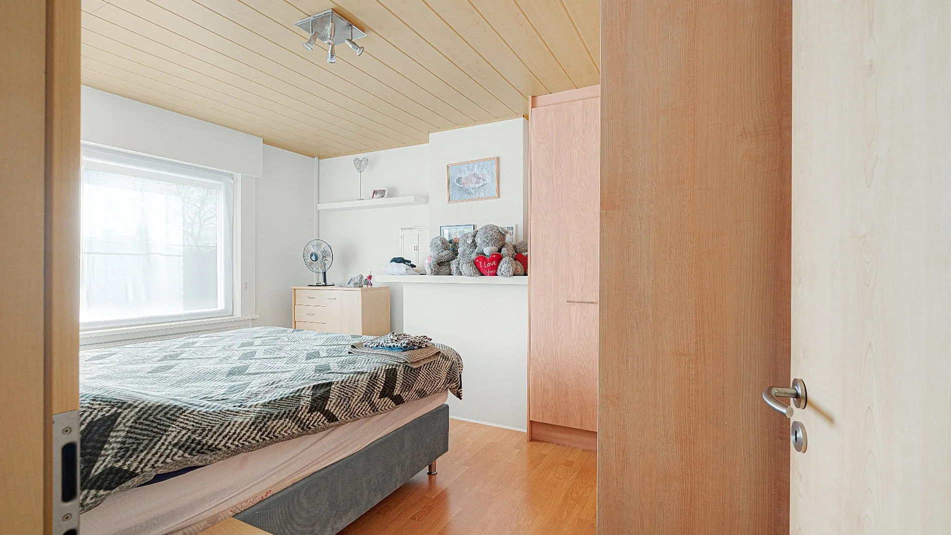 - Tweede ruime slaapkamer, eveneens met ingemaakte kasten,