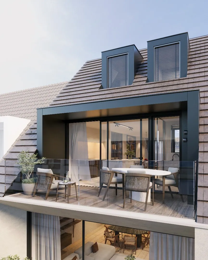 Extra aandacht werd besteed aan ‘outdoor living’. Zo beschikken alle appartementen over een ruim zuid gericht terras, afgewerkt met tropisch hardhout en standaard voorzien van een geïntegreerde buitenverwarming!